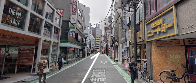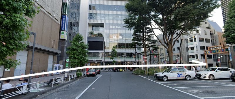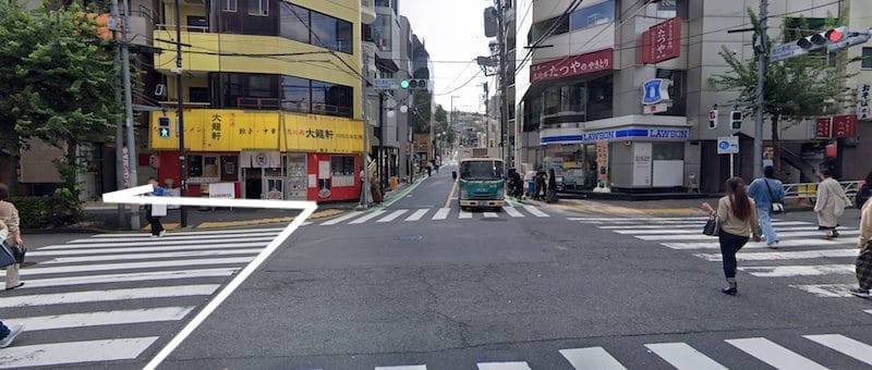 ▼交差点すぐの中華屋(黄色)の隣が入り口です。